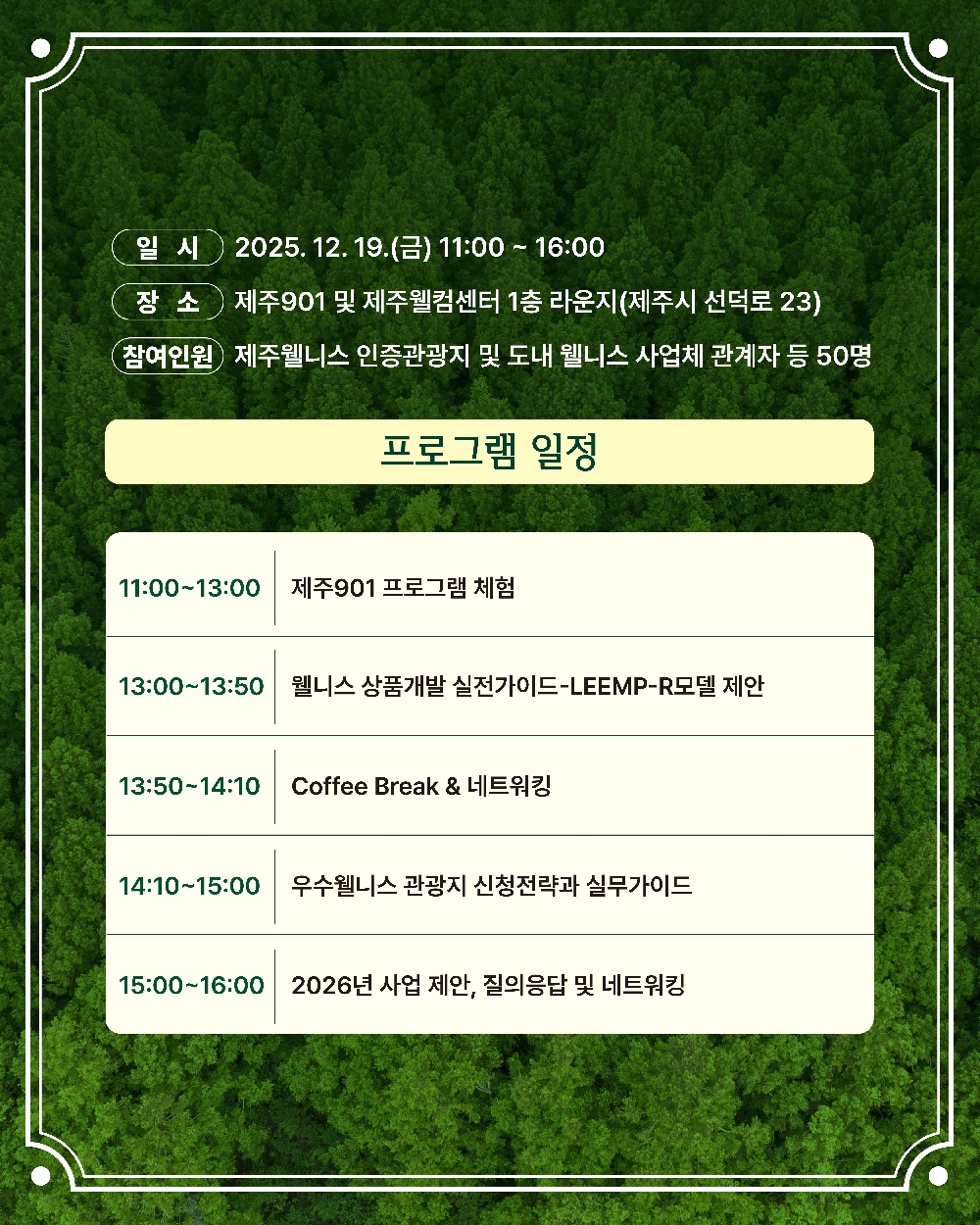 - 모집대상: 제주웰니스 인증관광지 및 도내 웰니스 사업체 관계자
