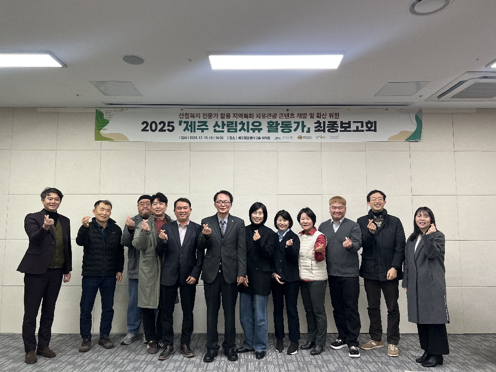 □ 제주특별자치도와 제주관광공사(사장 고승철)는 서귀포시 치유의숲(산림휴양관리소장 강희창), (사)머체왓숲 영농조합법인(대표 고철희), 제주한라대학교(치유사 양성기관)와 함께 「제주 산림치유 활동가」사업의 최종보고회를 지난 10일 제주웰컴센터에서 개최했다고 11일 밝혔다.