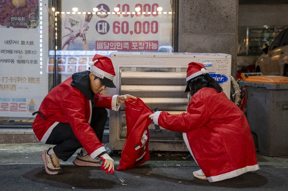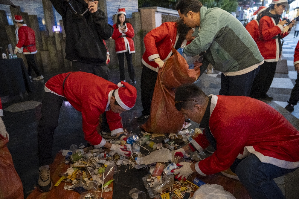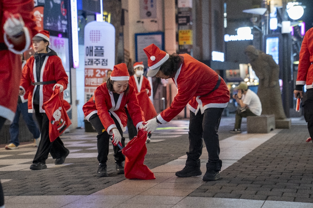 〇 이른 저녁 짧은 활동 시간이었지만 수거된 쓰레기양은 50리터 마대 네 자루에 달했다. 정화활동 중 산타구조대를 본 사람들은 버리려던 꽁초를 되가져가거나, 지나가던 차량이 멈춰“화이팅!”을 외치는 등 현장에는 따뜻한 응원 분위기도 이어졌다.